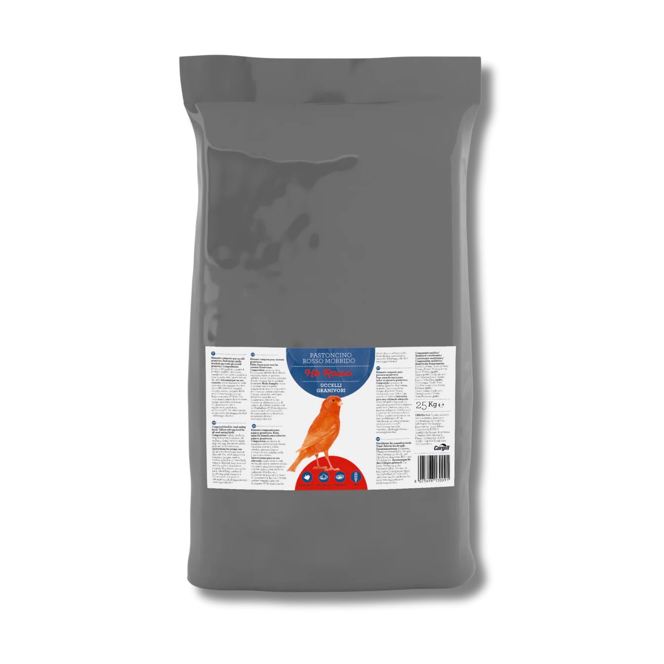 HB Rosso de la línea Fly Paté de Raggio di Sole es un alimento blando a base de huevo rojo con efecto pigmentante para la cría de todo tipo de aves granívoras con factor rojo.