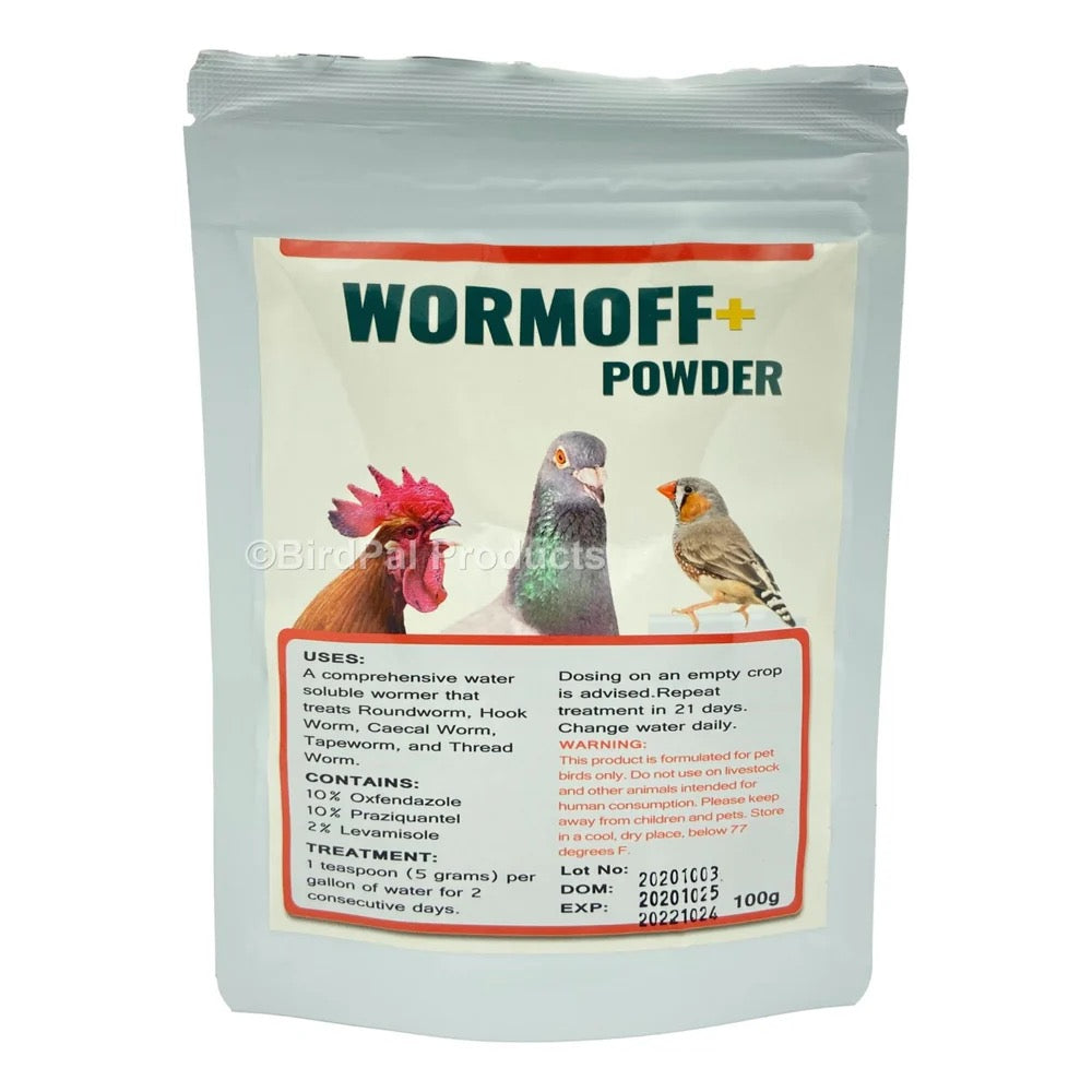 WormOff Plus Powder es un desparasitante hidrosoluble completo para palomas, gallinas y aves de jaula, que trata las lombrices intestinales, anquilostomas, lombrices cecales, tenias y oxiuros. Con los ingredientes activos oxfendazol, praziquantel y levamisol, WormOff Plus Powder le dará la tranquilidad de saber que sus aves reciben un desparasitante seguro y suave que combate eficazmente las lombrices más comunes.